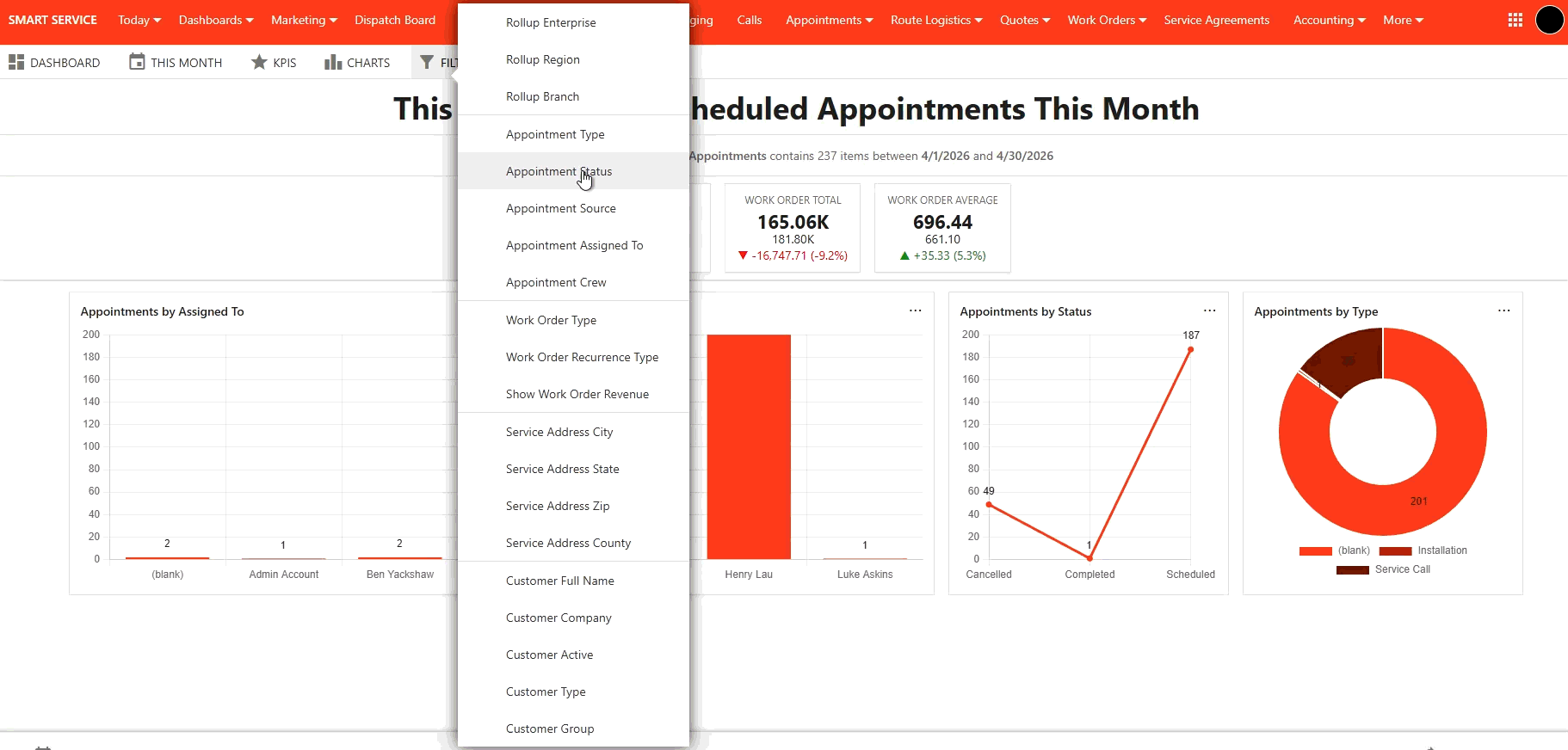 The Dashboards Center contains a visual representation of the data you’ve entered into Smart Service Cloud. While these representations aren’t our reporting feature, they provide graphical representations of the same data. You can always take screenshots of these charts and insert them into presentations.